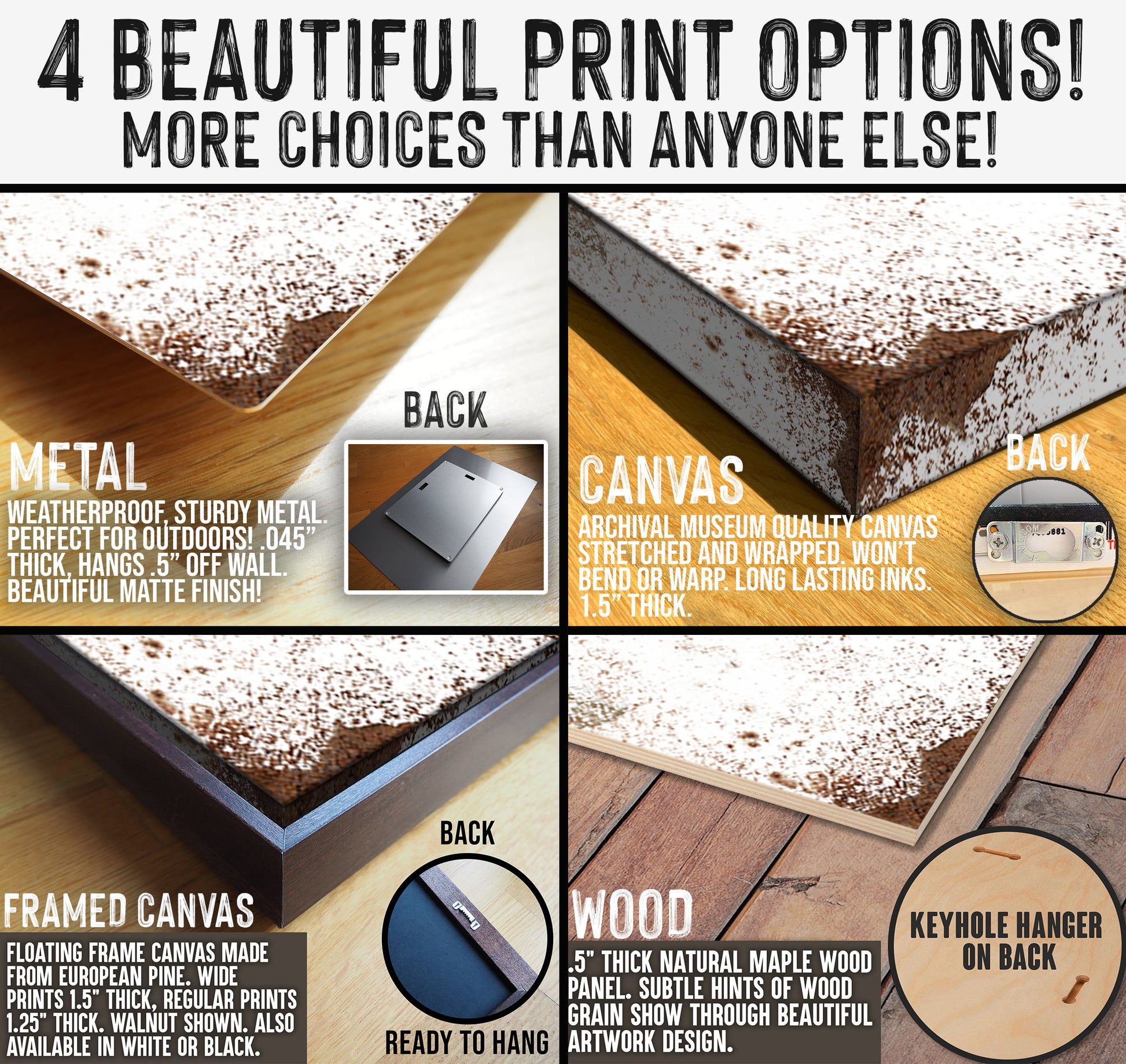 ➡️ Choose from CANVAS, FLOATING FRAME CANVAS, METAL, or WOOD - The largest selection of anyone out there!